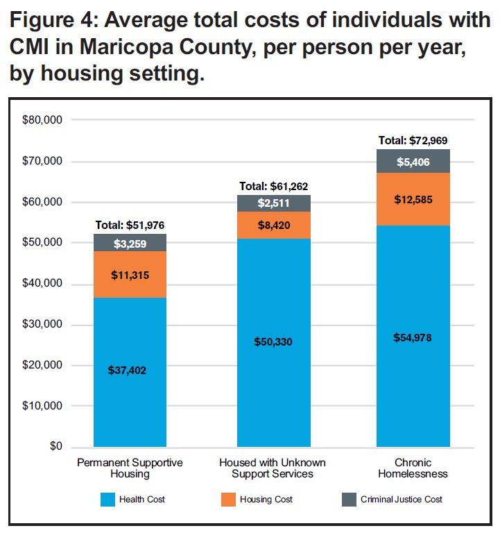 According to Arizona State University Morrison Institute for Public Policy’s new report requested by ACMI, “Housing is Health Care”, the average annual public spending on individuals with a chronic mental illness is $72,969, $20,993 more than the average cost of $51,976 for an individual who transitioned to permanent supportive housing. This represents a 29% reduction in cost. A case where the clinical approach and the financial cost clearly align.