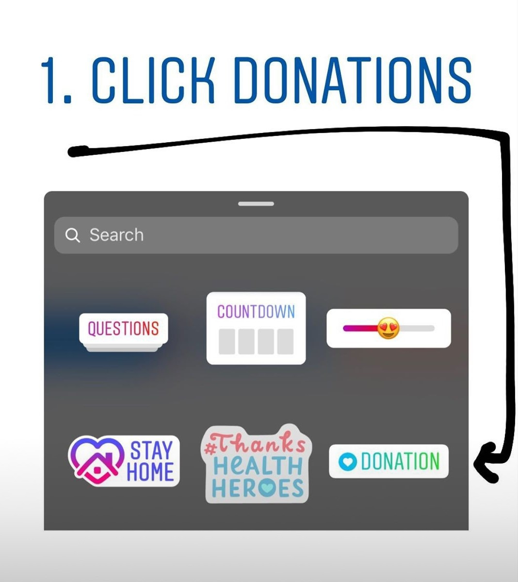 - Select the sticker icon and click the donate sticker option.